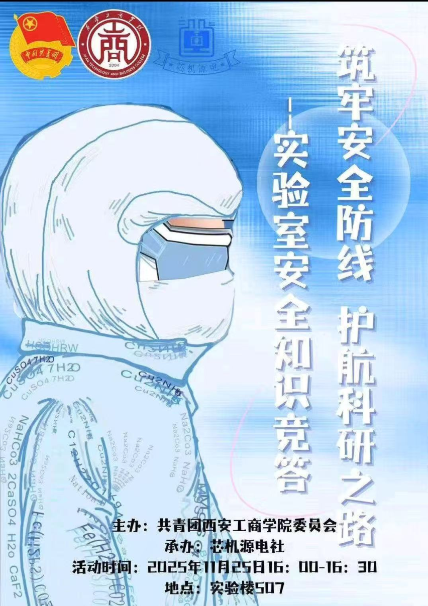 “筑牢安全防线 护航科研之路”——11月25日,由共青团西安工商学院委员会主办、芯机源电社承办的实验室安全知识竞答,在实验楼 507 火力全开!