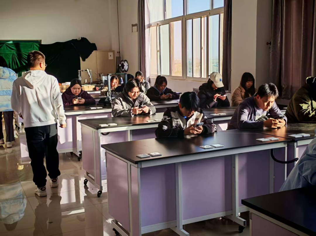 下午4点的实验室,阳光和答题的专注感一起铺满桌面——同学们拿着手机扫码答题,从仪器操作规范到用电用火禁忌,每道题都是实验室的“保命锦囊”。