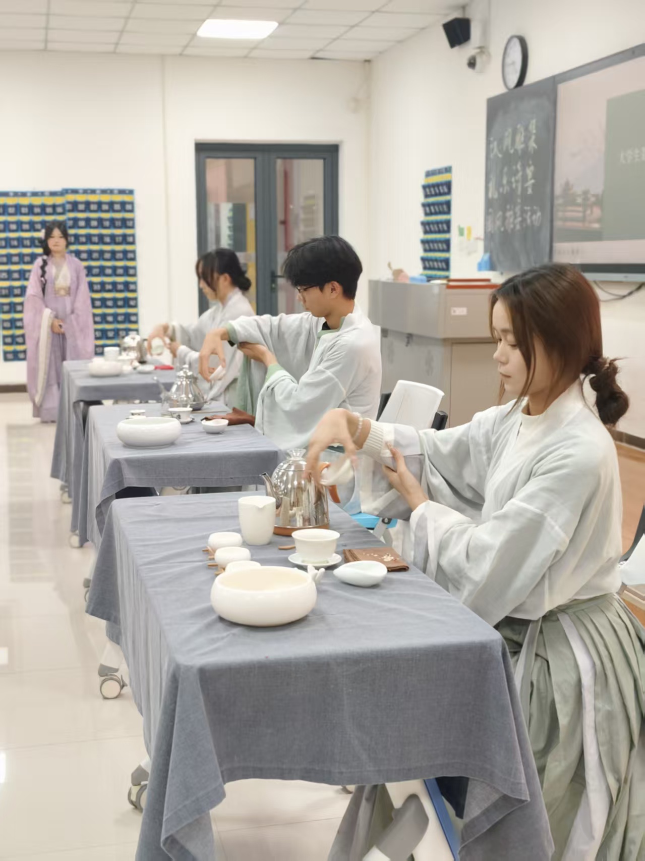 本次活动通过茶艺表演、汉服走秀、汉服礼仪讲座、书籍阅读、诗词飞花令、投壶游戏等多元形式,构建了一场沉浸式传统文化体验盛宴。活动旨在以汉服美学为切入点,让参与者亲身感受东方文化的雅致,同时增强对民族文化的认同感与传承意识。